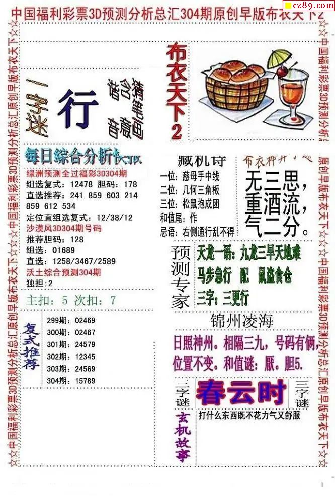 早版布衣2025304期3d图谜