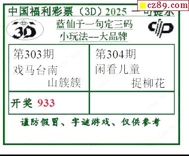 > 2025304期蓝仙子一句定三码