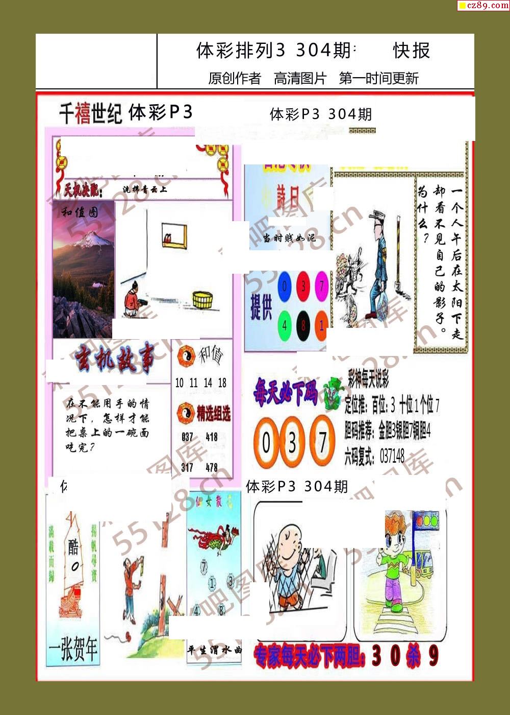香岛快报304期体彩p3图谜