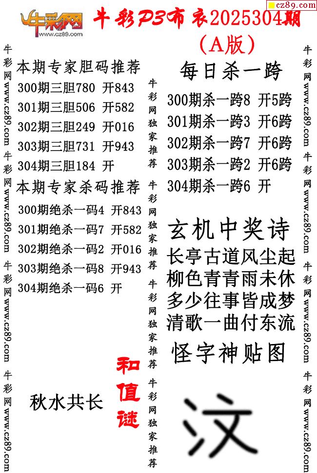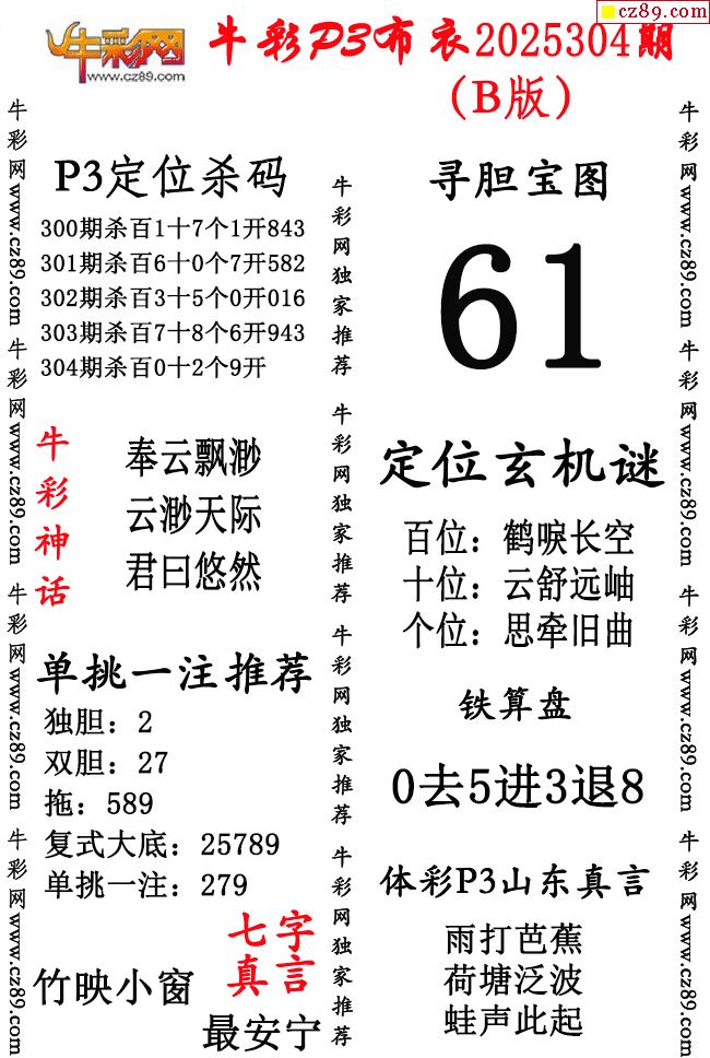 牛彩P3布衣25年304期AB版图谜(精华版)