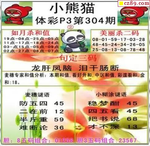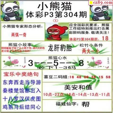 > 小熊猫2025304期体彩P3图谜