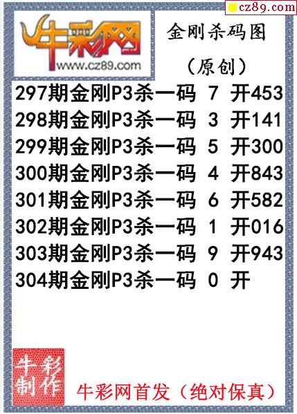 > 金刚杀码304期体彩P3图迷(原创)