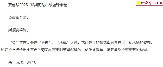 > 25年福彩双色球132期 哥伦布一句杀蓝球字谜
