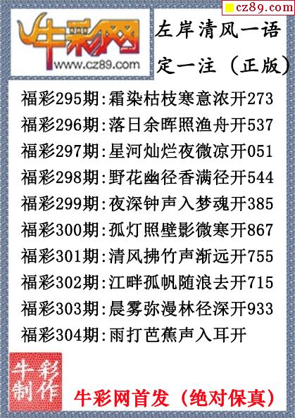 > 25年304期左岸清风一语定一注(原创正版)